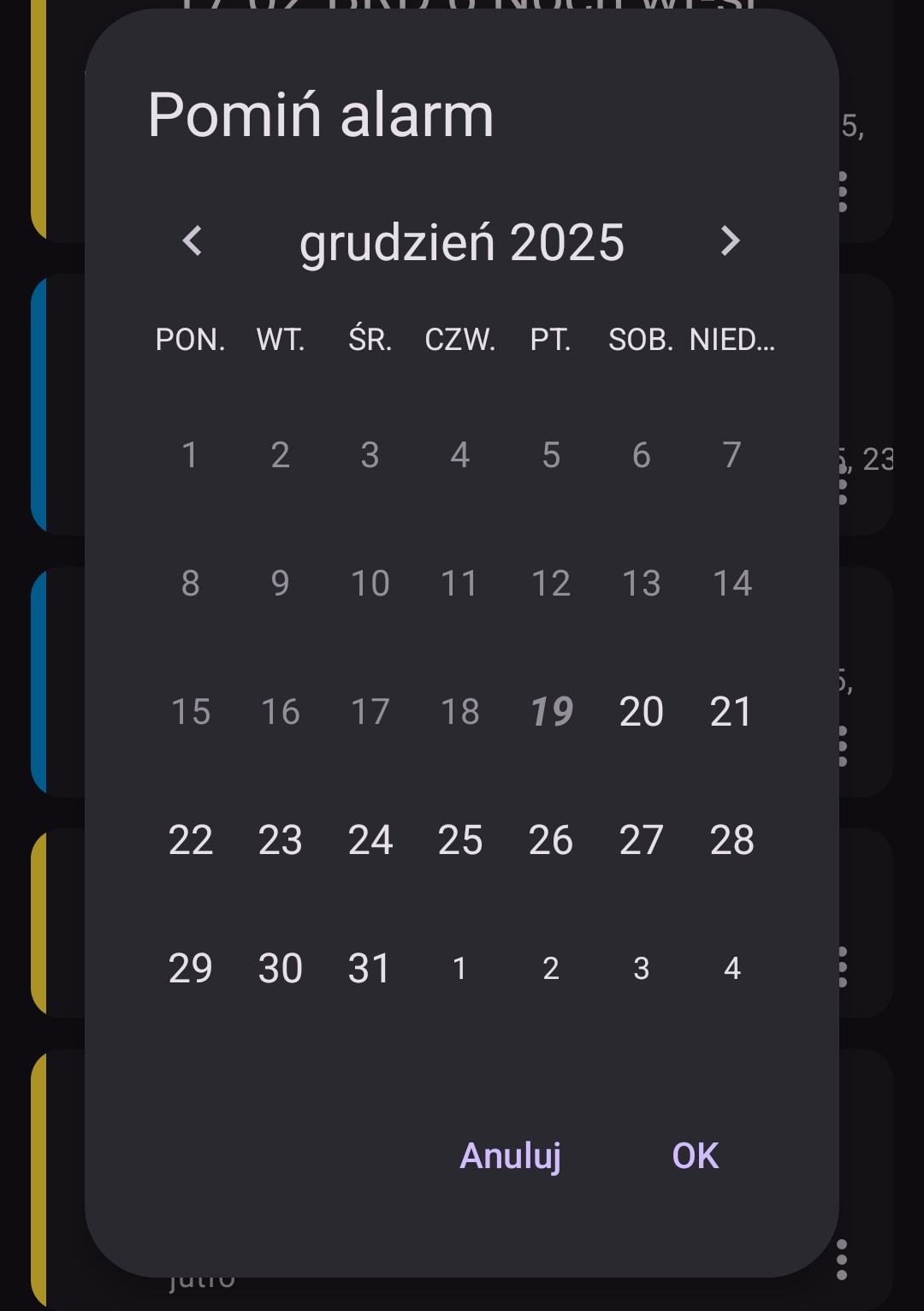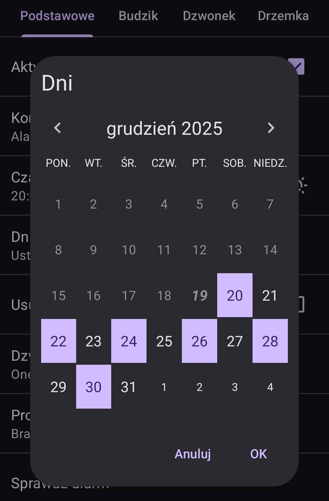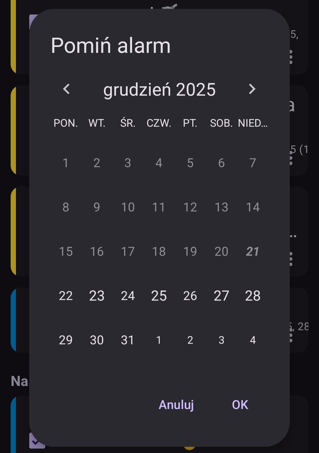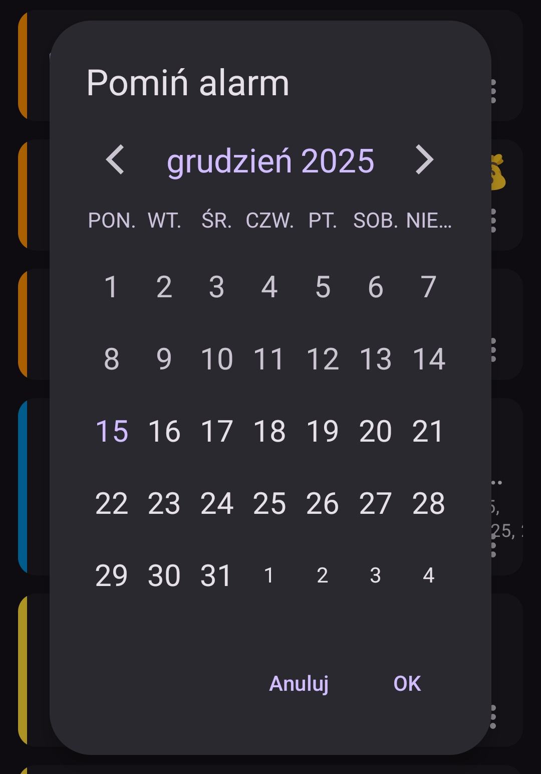 Hi, in version 15.2, in the “Skip Alarm” tab, the calendar doesn’t show marked days with active alarms. In the “Skip/Restore Alarm” tab, the calendar doesn’t show days with missed alarms.